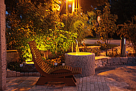 beleuchtete Moonlights und Minidots in der Mauer, Belag und im Wasser